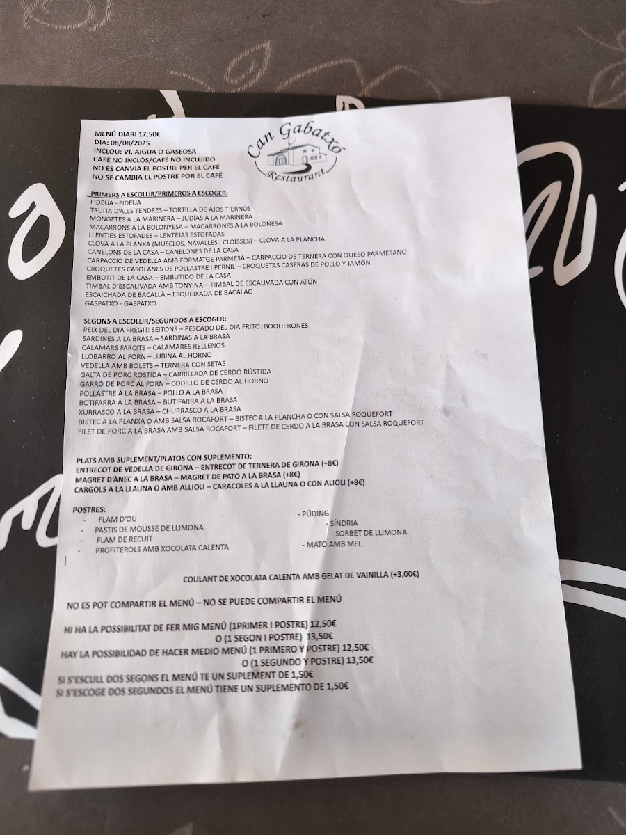 The menu at Can Gabatxo features a delightful selection of authentic Catalan dishes, showcasing seasonal produce and artisanal techniques. A highlight includes their expertly crafted paella, bursting with the freshest seafood, and the homemade flan, which promises to whisk you away with every velvety bite.
